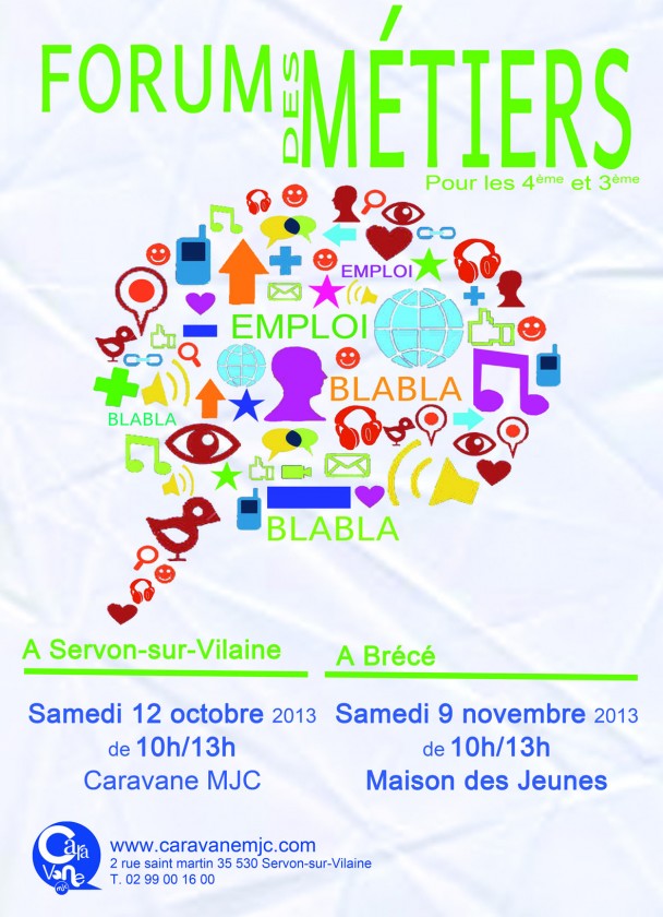 En 4e/3e il est parfois difficile de prendre une décision pour l’avenir. Le service jeunesse de la Caravane offre aux jeunes la possibilité de discuter avec des professionnels d’horizons différents (une infirmière, une garagiste, un avocat, un policier, un agriculteur…) afin de percevoir la réalité d’une profession. Samedi 9 Novembre, de 10h à 13h à la Maison de la Jeunesse.