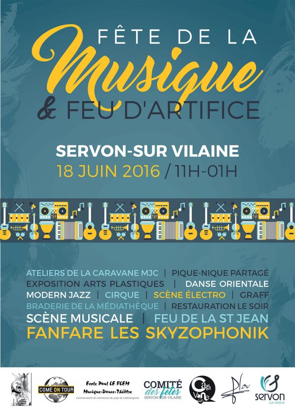 SERVON-SUR VILAINE 18 JUIN 2016 / 11H-01H ATELIERS DE LA CARAVANE MJC | PIQUE-NIQUE PARTAGÉ EXPOSITION ARTS PLASTIQUES | DANSE ORIENTALE MODERN JAZZ | CIRQUE | SCÈNE ÉLECTRO | GRAFF BRADERIE DE LA MÉDIATHÈQUE | RESTAURATION LE SOIR SCÈNE MUSICALE | FEU DE LA ST JEAN FANFARE LES SKYZOPHONIK PROGRAMME 11h – 17h Scène éléctro, graff & pique-nique partagé SAM 12h – 19h DIM 10h – 17h Exposition atelier arts plastiques 14h – 19h Braderie médiathèque l’Escapade 17h – 18h30 Danse orientale, modern jazz, cirque, roller hockey 18h30 – 21h30 Scène musicale 18h30 – 21h30 Restauration 21h30 – 23h Fanfare les Skyzophonik 22h30 – 01h Soirée électro 23h Feu de la Saint Jean 23h30 Feu d’artifice Renseignement Caravane MJC : 02 99 00 16 00
