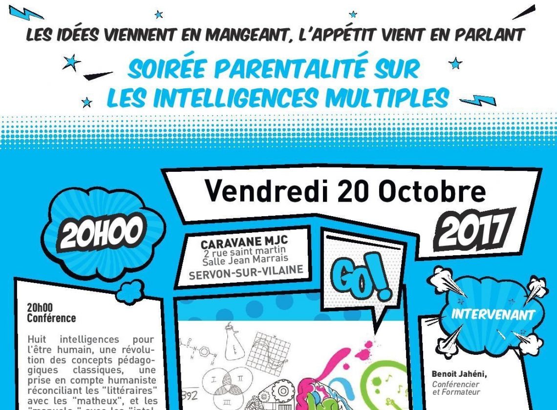 Soirée parentalité à la Caravane MJC – Servon sur Vilaine Dans le cadre des soirées « les idées viennent en mangeant, l’appétit vient en parlant » la MJC et les associations de parents d’élèves de la commune de Servon Sur Vilaine proposent une soirée parentalité, ayant pour thème « les intelligences multiples ». Gratuit Réservation conseillée auprès de la Caravane MJC 2 rue Saint Martin – Servon-sur-Vilaine 02 99 00 16 00