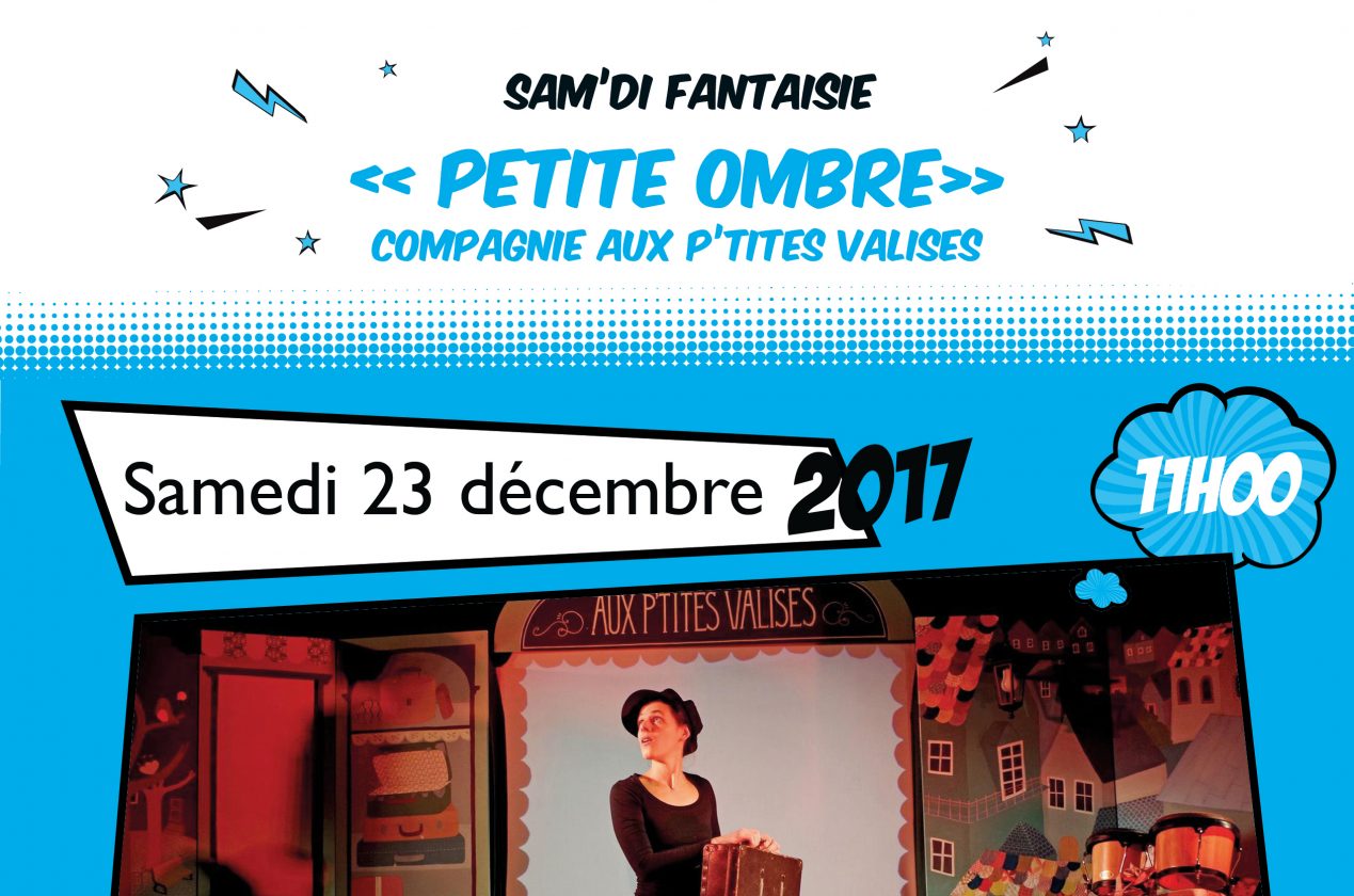 Sam’Di Fantaisie à la Caravane MJC – Servon sur Vilaine Samedi 23 décembre 2017 11h00 Spectacle: Petite Ombre Compagnie aux p’tites valises Ce spectacle s’articule autour du conte, de la danse, de la musique, et de la magie des ombres. Par sa poésie, ses jeux d’ombres et de lumières, Petite Ombre vous entraîne dans un univers où les couleurs se confondent, le noir devient blanc et la nuit s’illumine. Repas partagé 14h00 à 17h00 Atelier parents/enfants Après le repas, atelier marionnettes d’ombre avec les artistes. Gratuit Réservation conseillée auprès de la Caravane MJC 2 rue Saint Martin – Servon-sur-Vilaine 02 99 00 16 00